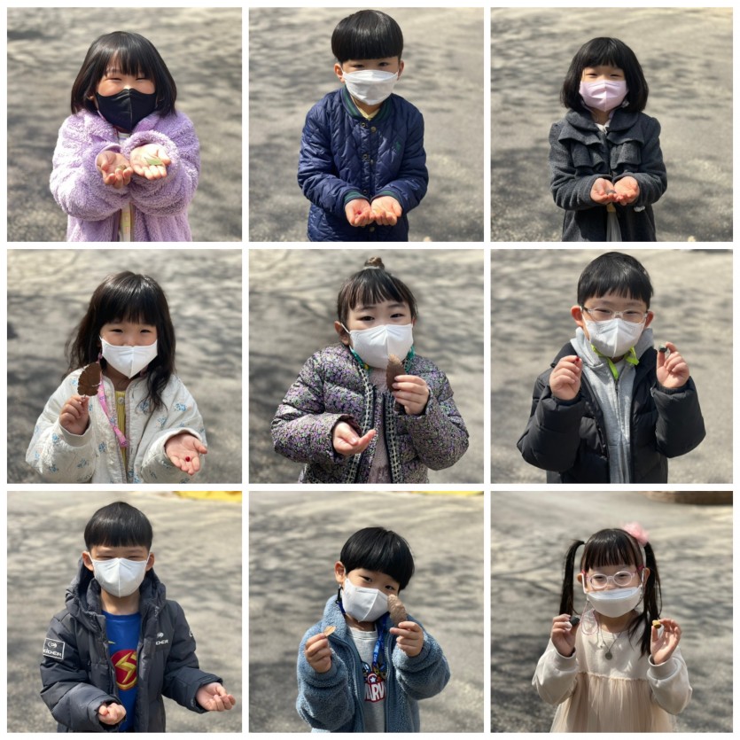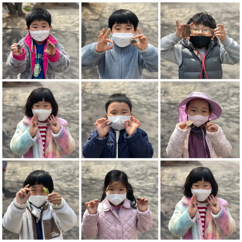 봄이 찾아온 따뜻한 교정에서 자연물을 찾아