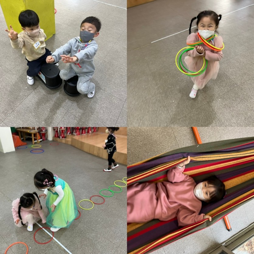 자동차도 타고 해먹도 타고 훌라푸프로 점프하며 아이들이 길도 스스로 만들며 재미있는 시간을 보냈어요!