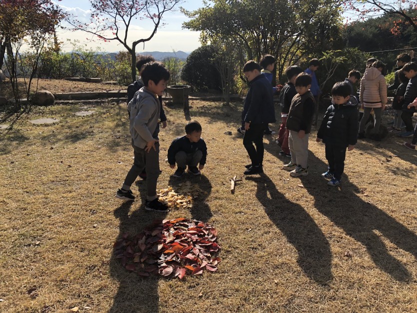 만5세 참깨 낙엽이 떨어져요 페이지 정보 작성자 수니유치원 댓글 0건 조회 6,340회 작성일 18-11-16 15:31 본문 낙엽이 왜 떨어지는지 솔방울 선생님의 이야기를 들어보고 수니숲에 떨어진 낙엽으로 만다라를 만들어보았답니다^^ 목록 이전글낙엽이 되기까지의 과정을 알아보아요 18.11.16 다음글흙에 사는 생물 18.11.16