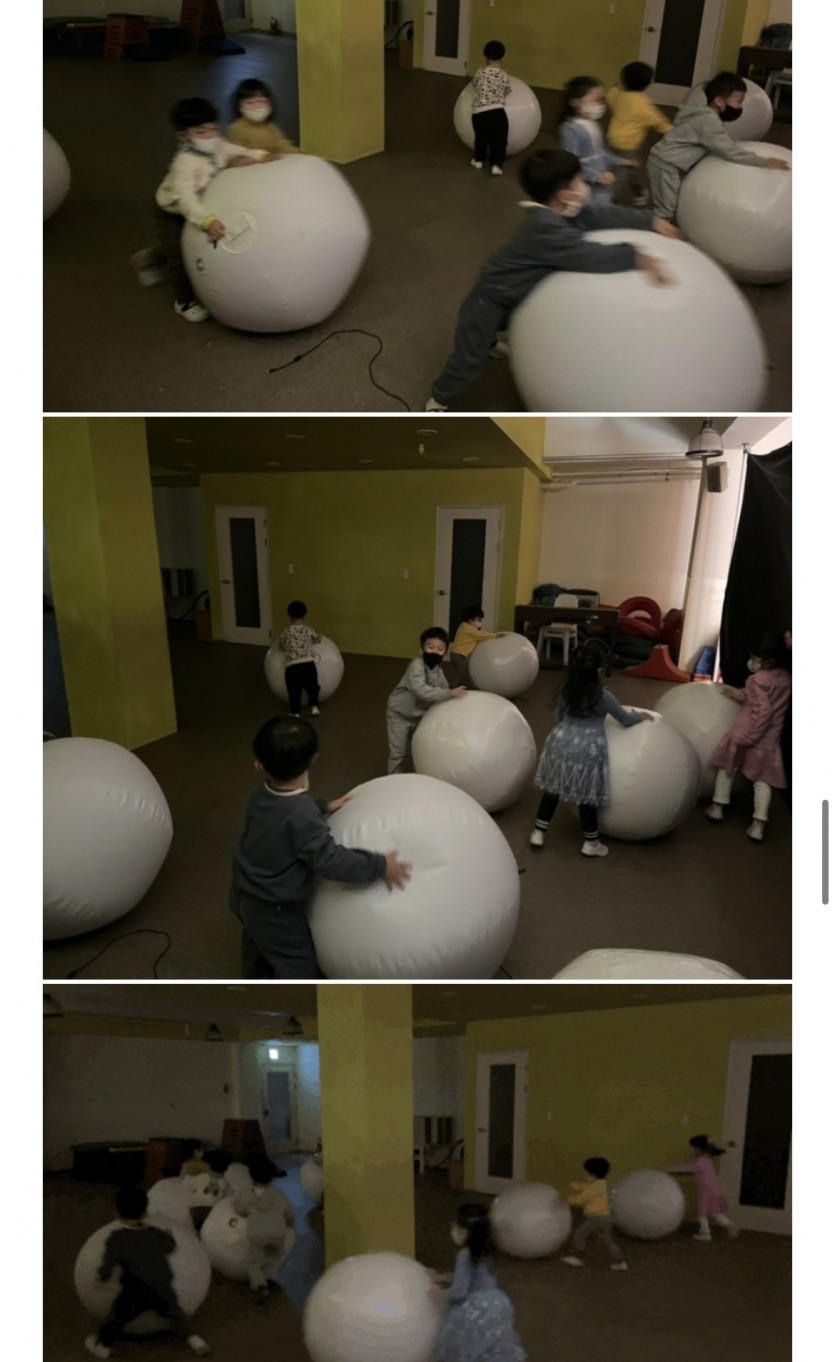 다함께 아이들 몸만한 공으로 열심히 친구들과 공놀이도 하며