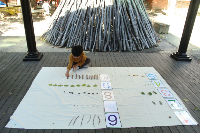 수니교정에서 자연물을 이용한 수업을통해 몬테소리 수영역, 감각영역 등을 반복학습 한다. 분류하기, 순서짓기, 측정하기 등 다양한 수학적 개념을 놀이하듯 자연스럽게 익혀나간다.